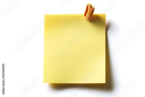 paper, square, blank, empty, isolated, white background, office supply, stationery, reminder, message, communication, memo, single object, simple, clean, warm tones, paper clip, topview