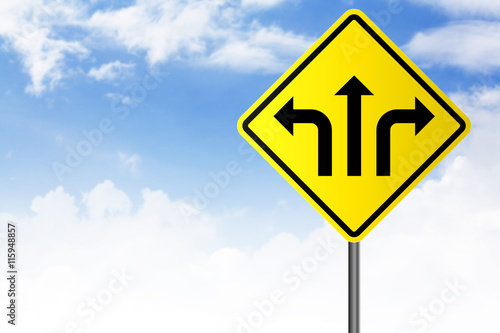 yellow, street, road, signs, roadsign, signpost, post, decision, making, destination, route, symbol, guide, choice, direction, objective, way, information, crossroad, arrow, journey, guidance, alternative, uncertainty, blue, sky, cloud