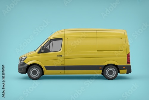Yellow Transport Van from Right Side View, with empty blank space for text copy space or mockup design, high detail, 8k