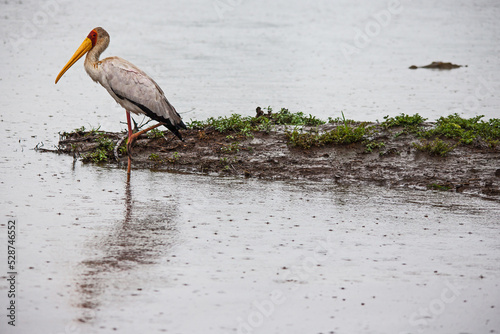 Yellow-billed Stork (Mycteria ibis) in the rain 15145