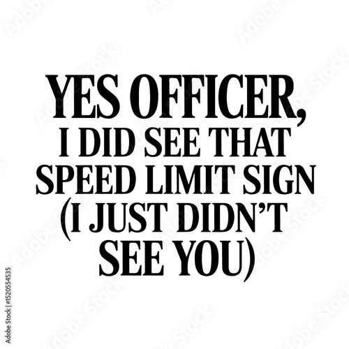 Yes Officer, I Did See That Speed Limit Sign (I Just Didn't See You). Sarcastic Quote Vector Design Isolated on White Background