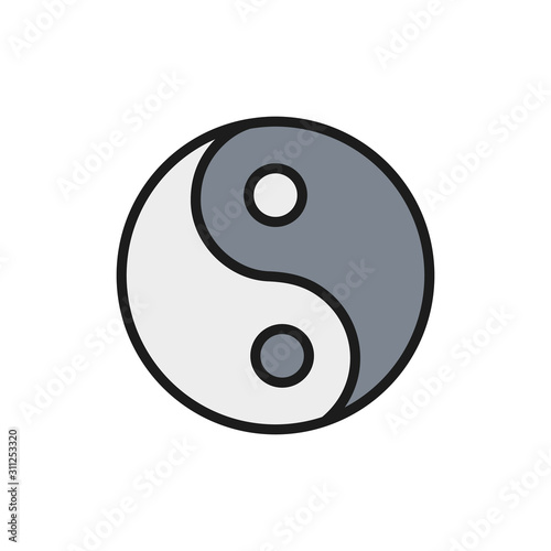 Yin yang sign, traditional chinese symbol flat color line icon.