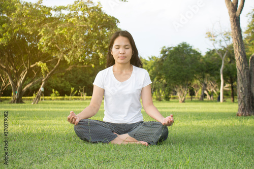 Yoga Outdoor Meditation, Woman Body Meditating, Human Hand.