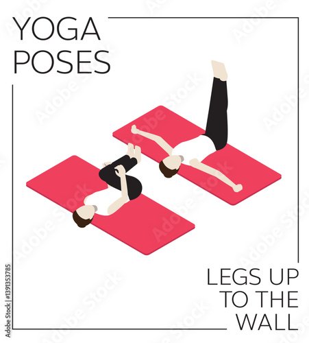 Yoga Pose Legs Up to the Wall Isometric Vector Set