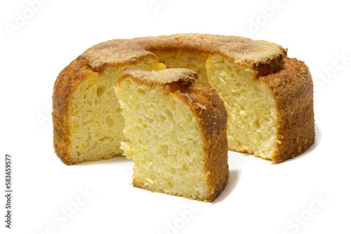 Yoghurt sponge cake, isolated on white background. Pastry concept..