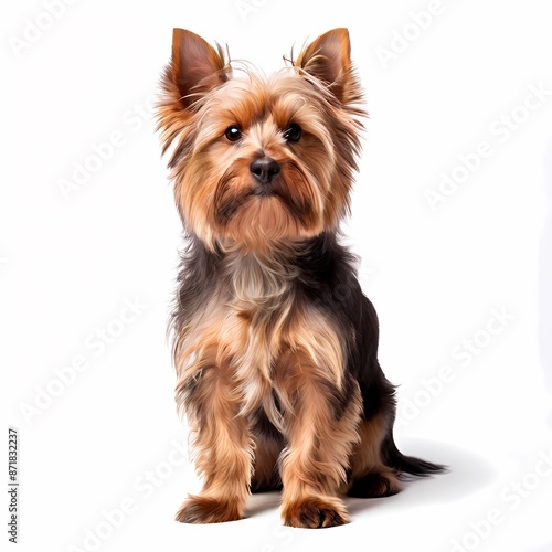 Yorkshire terrier dog breed standing against white background, AI Generated