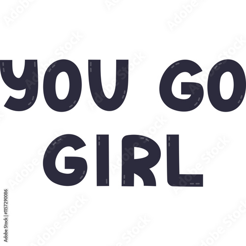 You Go Girl. Hand drawn bold lettering as greeting for International Women Day, slogan of feminism movement. Motivational phrase as sign of female strength, community, equality isolated on white