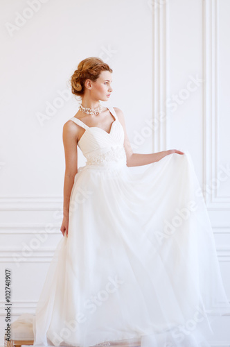 hair, people, female, person, white, adult, young, pretty, beautiful, portrait, calm, woman, elegance, attractive, fashion, celebration, decorated, necklace, beauty, natural, luxury, caucasian, posing, long, sexy, ring, bride, dress, bridal, wedding, elegant, pearl, glamour, lady, lipstick, bead, morning, serenity, blonde hair, tender, halter, curly hair, blue eye, bare shoulder