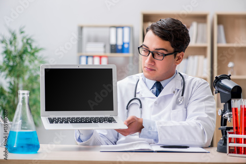 Young adult doctor with laptop computer