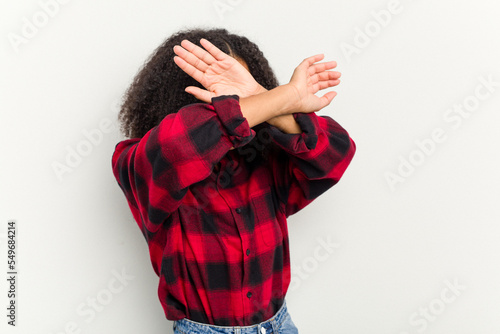 Young african american woman isolated on white background keeping two arms crossed, denial concept.