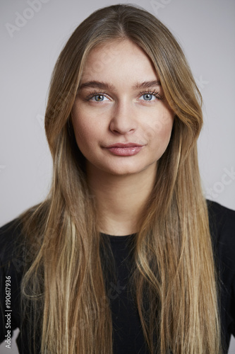 Young and beautiful woman looking to camera, studio