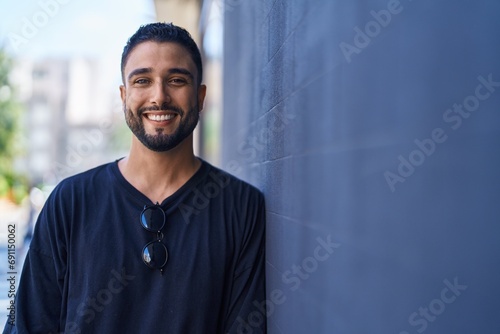 Young arab man smiling confident standing at street