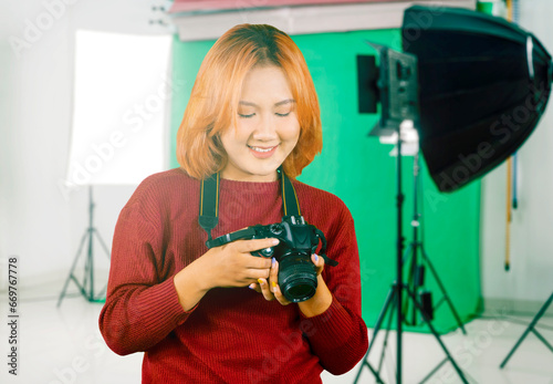 laptop, success, portrait, camera, photo, creativity, photographer, working, connection, occupation, skill, tripod, production, digital camera, studio, brunette, wireless technology, satisfaction, horizontal, expertise, confident, convenience, determination, front view, indoor, leaning, one person, ready, standing, young, light, asian, female, smile, cute, red, hair, korean, japanese, chinese, indonesian, student, college, assistant