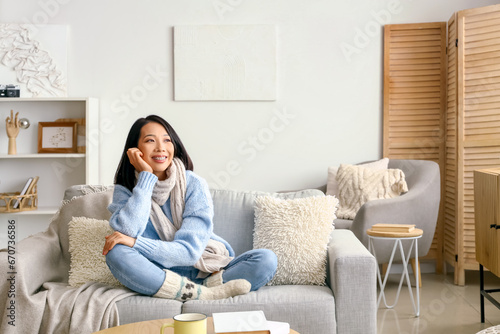 asian, home, sitting, sofa, woman, adult, autumn, background, beautiful, calm, casual attire, clothes, cold, colours, comfort, covering, cosy, fall, fashion, female, freeze, freezing, frost, glacé, garment, girl, happy, indoor, lifestyle, look, outfit, people, person, portrait, relax, foulard, season, style, stylish, sweater, textile, trend, vogue, warm, warming, wearing, weather, weekend, winter