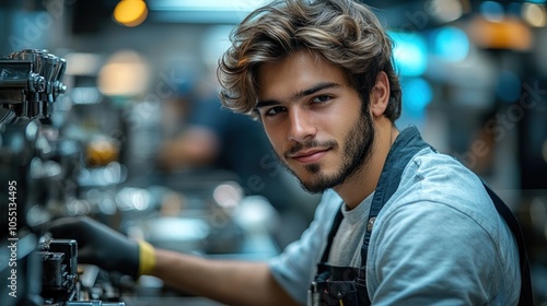 barista, hot drink, machine, cafes, young, male, smiling, glove, equipment, brewing, service, professional, work, skill, kitchen, beverage, espresso, latte, aroma, steam, craft, preparation, bar, teamwork, hospitality, life events, modern, style, sharpened, portrait, casual attire, friendly, atmosphere, energy, industry, passion, client, engagement, quality, tradition, training, expertise, creativity, dedication, environment, workspace