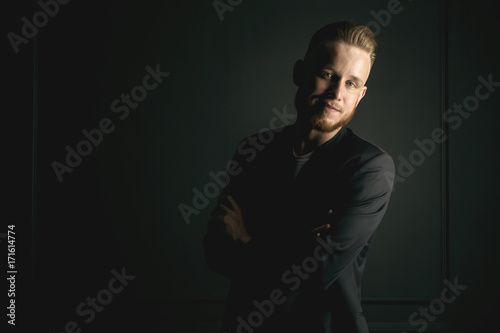 adult, against, attractive, background, beard, bearded, beautiful, black, business, businessman, casual attire, company, confidence, dark, elegant, facial, fashion, guy, hair, hand, happy, holding, human, latin, leader, leaning, look, male, man, model, modern, necktie, people, person, pocket, posing, shirt, single, smile, style, success, suit, attaching, tuxedo, unshaved, wall, work, young