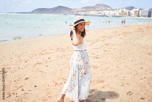 Young beautiful woman smiling happy enjoying summer vacation at the beach