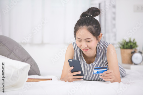 card, credit, phone, shopping, mobile, online, woman, payment, banking, smartphone, hand, holding, girl, happy, smart, technology, purchase, cyberspace, e-business, female, travel, buy, paying, pay, finance, young, bed, home, bedchamber, beautiful, person, asian, business, wireless, people, room, shop, lifestyle, communication, concept, smile, white, client, electronic, e-business, casual attire, buying, digital