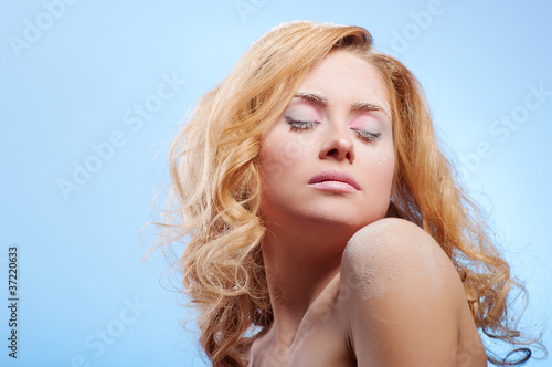 1, skin, art, studio, fashion, fantasy, person, closeup, freezing, adult, colours, make-up, silver, human, head, caucasian, cool, cold, face, winter, ice, beauty, female, woman, frost, model, white, portrait, beautiful, snow, freeze, season, glacé, young, blue, eye, closed, shoulder, icy, lip, girl, hair, concept, attractive, expression, christmas, christmas
