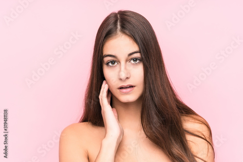 isolated, attractive, beauty, brunette, caucasian, cute, emotional, european, expressive, eye, female, gesture, gesticulate, girl, glad, glamour, green, grinning, hair, coiffure, happiness, happy, joy, joyful, look, lovely, model, natural, nice, peaceful, person, pink, pleased, portrait, pose, positive, pretty, satisfied, smile, smiling, student, studio, style, teenage, teenage, tender, white, woman, young, youth