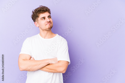 Young blond curly hair caucasian man isolated smiling confident with crossed arms.