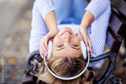 contraption, relaxation, relax, freedom, enjoy, hear, relaxed, emotion, nice, 1, expression, rest, modern, sunny, outdoors, caucasian, woman, young, earphones, music, female, park, attractive, girl, beautiful, pretty, mp3, earphones, casual attire, student, bench, person, cute, smile, listening, city, sound, listen, day, leisure, green, lifestyle, adult