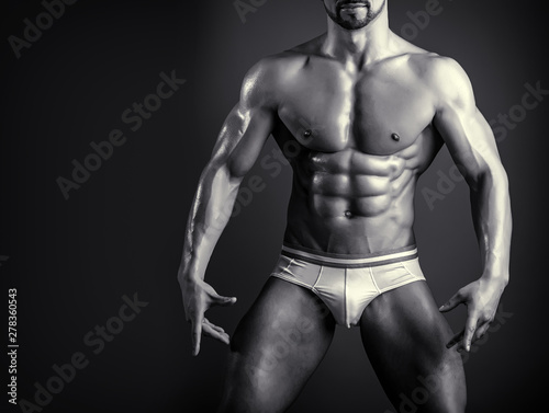 sexy, hot, naked, macho, brutal, bodybuilder, young, muscular, fit, fitness, body, tanned, dark, seductive, seduction, sex, coach, trainer, sport, sportsman, man, male, model, gym, diet, healthy lifestyle, active, activity, healthy, health, underclothing, white, monochrome, advertising, posing, strong, power, pose, serious, powerful, beauty, photogenic, athletic, athlete, belly, tummy, abs, dieting, closeup