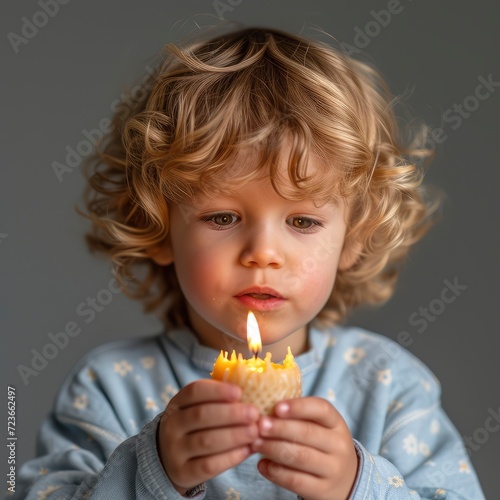 Young Boy Blowing Out Candle On White Background, Illustrations Images