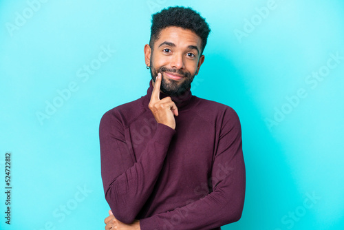 man, man, people, person, male, model, guy, photogenic, youth, young, adult, blond, brunette, beard, brazilian, latin, hair, isolated, colours, colourful, wall, blue, pensive, thinks, idea, solution, thoughtful, thought