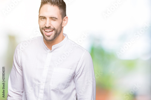 Young business man over isolated background winking looking at the camera with sexy expression, cheerful and happy face.