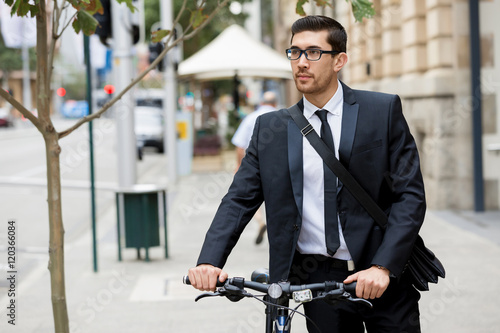 Young businessmen with a bike