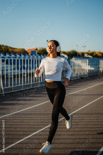 running, jogging, woman, fitness, runner, sport, earphones, health, sunset, fit, exercise, slim, background, athletic, dawn, movement, music, run, sun, autumn, jog, smiling, wellness, caucasian, adult, jogger, sporty, copy space, female, moving, nature, 1, activewear, outdoors, healthy, person, young, training, people, lifestyle, leaf, sunlight, physical exercise