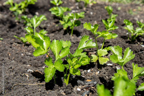 Young celery in the garden