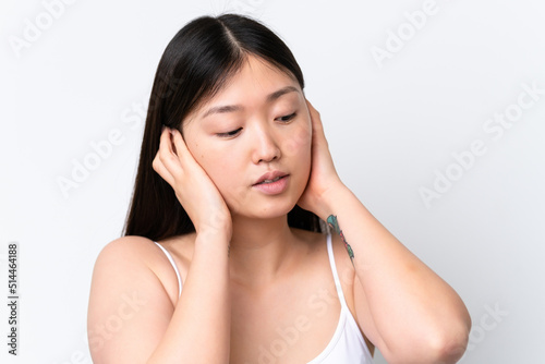 Young Chinese woman isolated on white background . Close up portrait