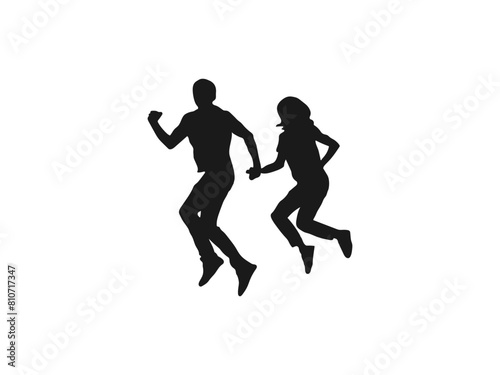 young couple friends jumping silhouettes. silhouette of jumping people Vector. Vector silhouette dancing and entertainers with people. party people black silhouette on white background.