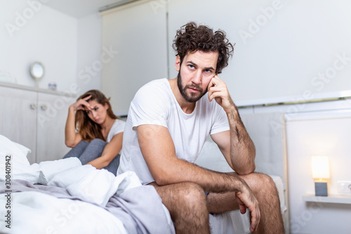 man, infidelity, sensuality, woman, husband, frustration, emotional stress, problem, divorce, waking up, disappointment, distraught, arguing, married, wife, fighting, anger, mature adult, betrayal, irritation, bedchamber, male, morning, conflict, separation, ignoring, social issue, house, people, two people, adult, copy space, emoticon, bankruptcy, looking, adults only, female, horizontal, indoor, lifestyle, pajama