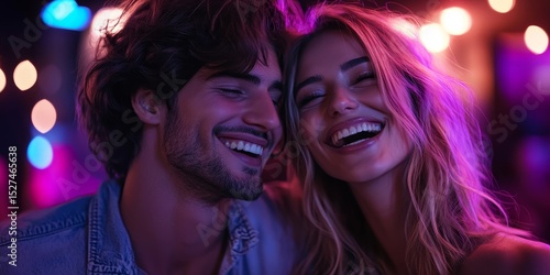 Young couple having fun at a club, laughing and dancing together, enjoying a night out, Generative AI