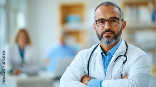 Young doctor discusses treatment to enhance patient care in modern clinic
