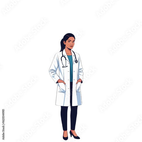 doctor, stethoscope, medicine, health, medicals, hospital, care, health care, people, clinic, standing, smile, confident, uniform, physician, coat, practitioner, nurse, photogenic, professional, person, occupation, smiling, profession, surgeon