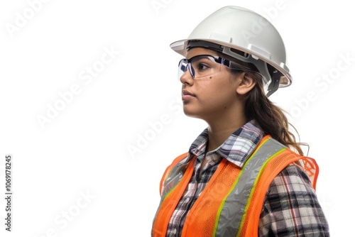 engineer, isolated, men at work, woman, background, white, helmet, construction, young, industry, female, safety, portrait, job, architect, people, professional, pose, vest, clipboard