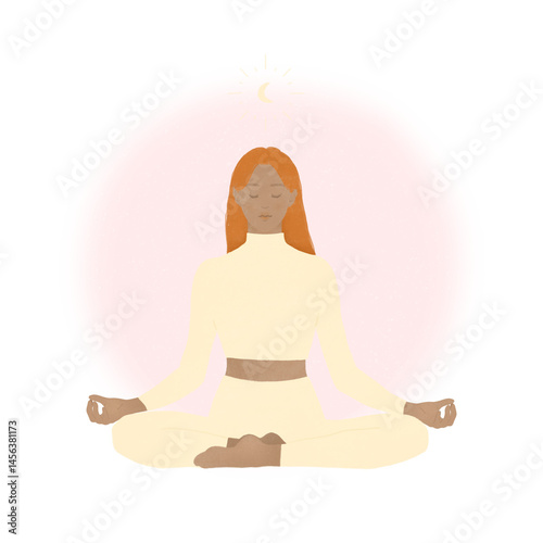 yoga, young, beautiful, asian, woman, practicing, mindfulness, illustration, healing, meditation, exercise, fitness, body, sport, beauty, pose, stretching, health, training, active, studio, physical exercise, spirituality, aura, lifestyle, breathe, breathing, concentration, sharpened, activewear, healthy, calm, zen, wellness, well-being, diversity, hobby, leisure, chakra, mental health, relaxed