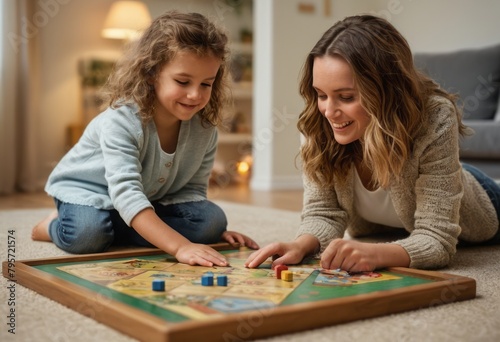 Young girl engaging with an educational game on a digital tablet at home. Highlights digital learning and early education.