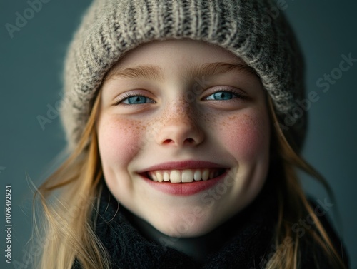 Young girl in hat and scarf