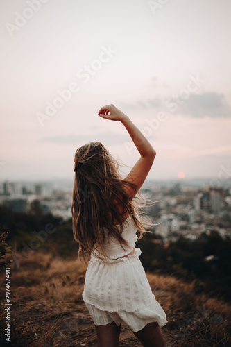 girl, young, mountain, hair, freedom, summer, nature, landscape, beautiful, sky, beauty, people, ocean, sun, water, happy, relaxation, outdoors, blue, dress, person, health, happiness, vacation, travel