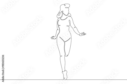 Young girl woman in fitness sportswear.One continuous drawing line logo single hand drawn art doodle isolated minimal illustration.