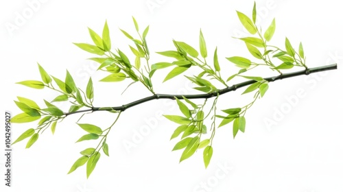 Young green bamboo with delicate new leaves, isolated on white background