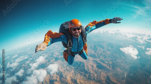 jump, sky, blue, body, person, jumping, people, sport, joy, happiness, active, freedom, fly, energy, action, exercise, smiling, air, fun, fitness, motion, outdoors, summer, cloud, guy, plane, high, speed, height, extreme, skydiving, lifestyle, youth