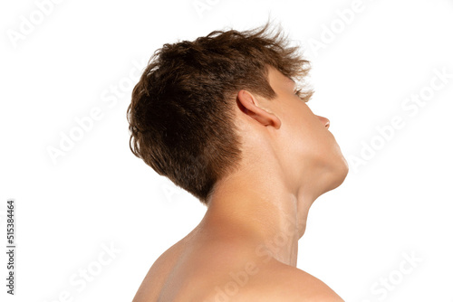 Young handsome boy, teen with well-kept skin isolated on white studio background. Concept of teenage skin care, health, cosmetics for problem skin, youth