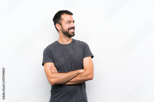 man, man, people, person, male, guy, model, portrait, photogenic, youth, young, adult, hispanic, caucasian, latin, beard, background, wall, isolated, white, happy, smile, life, style, crossed, pose, expression, confident, smiling, face, positive, fun, happiness, lifestyle, laughing