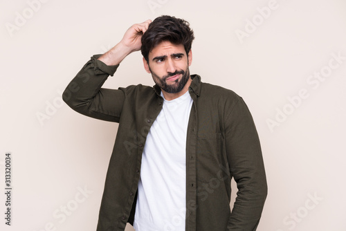 man, man, people, person, male, guy, studio, photogenic, young, adult, hispanic, caucasian, beard, isolated, background, wall, confuse, wonder, uncertain, ignore, disappointed, question, concept, interested, puzzled, uncertain, objection, choose, doubt, expression, face, idea, looking, pensive, thinking, thoughtful, thought